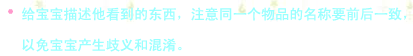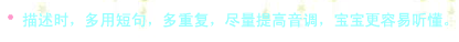 比如,一边给宝宝洗澡,一边描述:“宝宝洗澡啦,给宝宝脱衣服,宝宝拍水真开心?!?